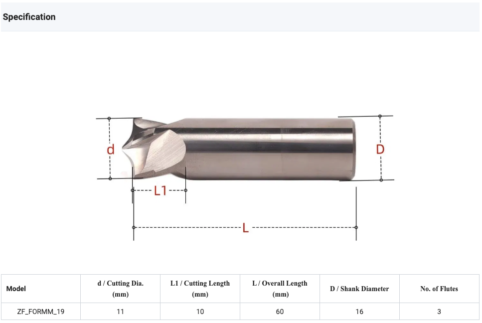 产品特色: * Solid Carbide Material * Uncoated 4-Flute * Capable of Form Milling * Suitable materials: Aluminum Alloy, Stainless Steel, Hardened Steel / Tool Steel * Applications: Aerospace, Consumer Electronics, Automotive, Industrial Machinery, Medical Devices, and various other industries.